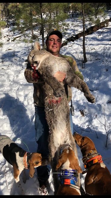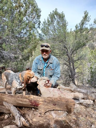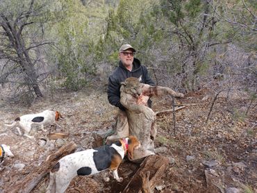 A very nice Mountain Lion bayed-up by some of my hounds. "I have selected and trained all of my own hounds to be some of the toughest, cold-nosed hounds in the Southwest."