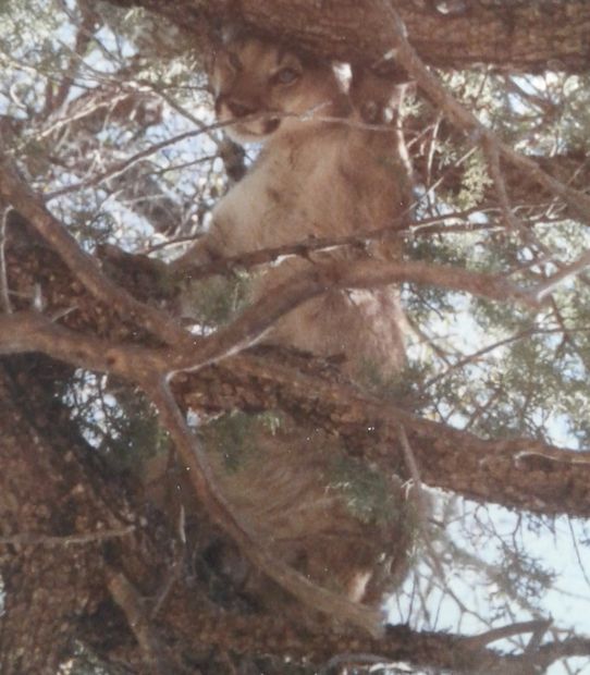 A very nice mountain lion treed by some of my hounds. "I have selected and trained all of my own hounds."